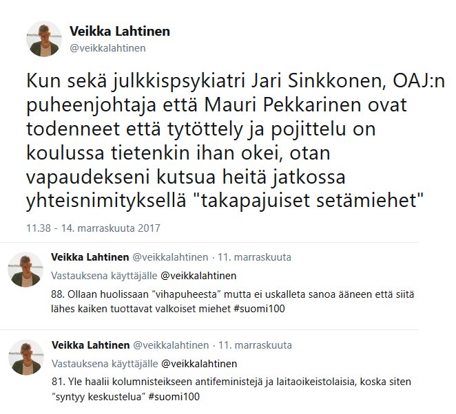 Psykopatologia kirjoitti:"Saastaisuus" riippuu feminismin määritelmästä. - Wessman on mukana feministisessä kielipelissä.